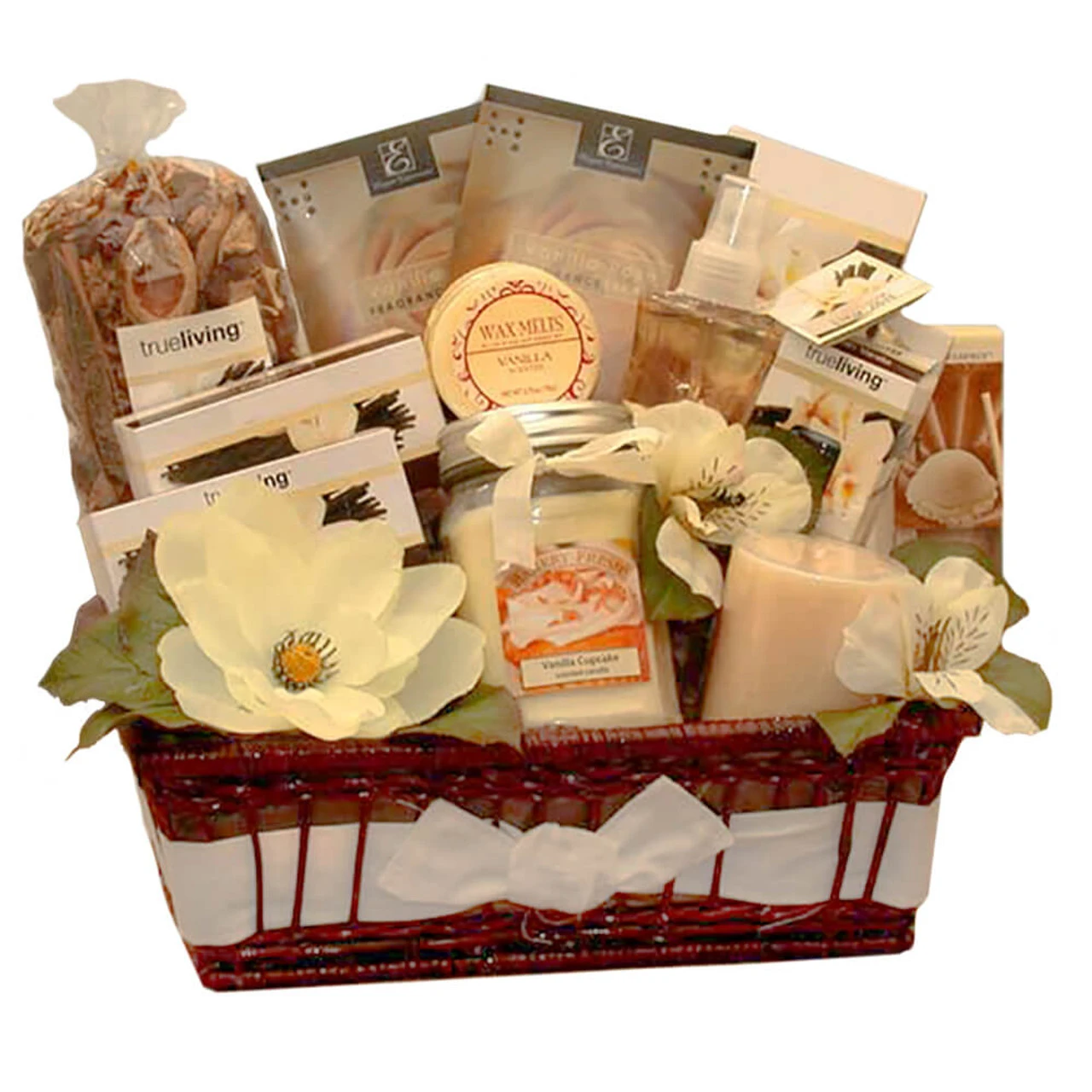 The Vanilla Delights Candle Gift Basket includes: